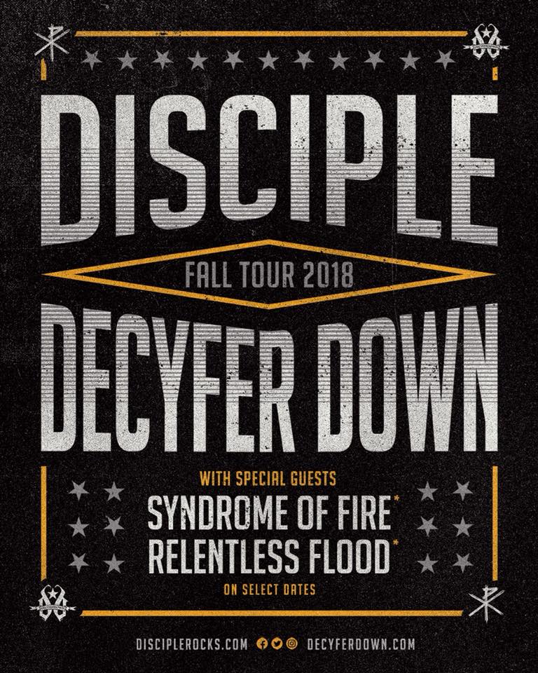 Veteran rock bands Disciple and Decyfer Down have announced that they are teaming up for a tour this fall. They'll be featuring opening acts Syndrome of Fire and Relentless Flood on select dates. The tour is still booking dates through Faith Artist Agency, routing through AL, TN, KY, OH, IN, SD, WY, CO, NM and TX. [...]